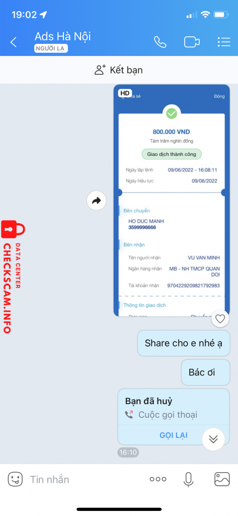 Cảnh báo kẻ lừa đảo: Vũ Văn Vinh Đã báo cáo: November 16, 2024 Thông tin kẻ lừa đảo Họ và tên: Vũ Văn Vinh Cổng thanh toán: MB Bank Tài khoản thanh toán: 9704229209821792983 Danh mục: Lừa đảo mua bán Nguồn: Checkscam Tệp bằng chứng Mô tả báo cáo Lừa đảo bằng hình thức bán tài khoản quảng cáo nolimit , sau khi chuyển khoản xong thì mất tích không 1 câu rep Bình luận Bình luận của bạn Thêm bình luận Chưa có bình luận nào. Hãy là người đầu tiên chia sẻ kinh nghiệm của bạn với kẻ lừa đảo này.