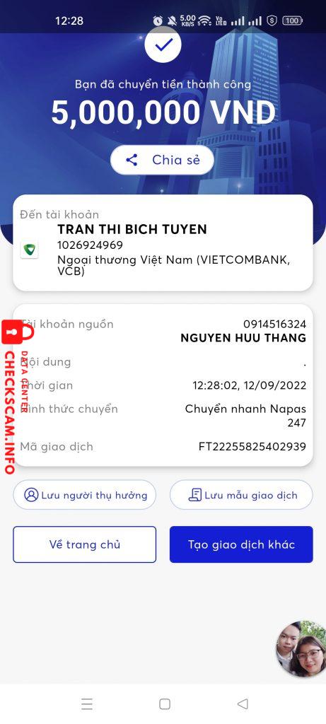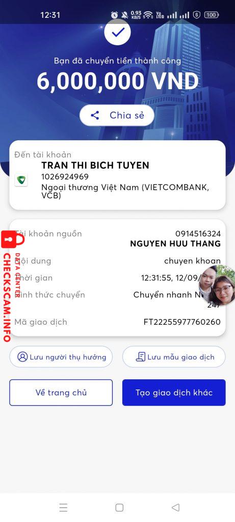 诈骗者警报: Trần Thị Bích Tuyền 已报告: November 16, 2024 诈骗者信息 全名: Trần Thị Bích Tuyền 支付网关: Vietcombank 支付账户: 0041000371020 类别: 市场诈骗 来源: Checkscam 证据文件 报告描述 Scam nick fb nhắn tin lừa chuyển tiền 评论 您的评论 添加评论 暂无评论。成为第一个分享您与此诈骗者经历的人。