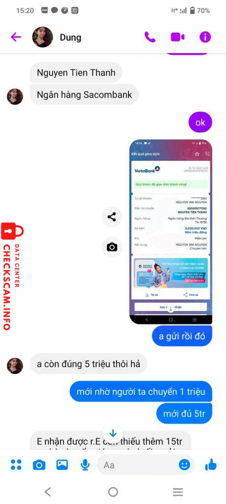 诈骗者警报: Nguyen Tien Thanh 已报告: November 16, 2024 诈骗者信息 全名: Nguyen Tien Thanh 支付网关: Sacombank 支付账户: 020095771352 类别: 市场诈骗 来源: Checkscam 证据文件 报告描述 hack facebook và lừa chuyển tiền, ngày mai bị hại sẽ trình báo công an, mọi người có ai bị số tài khoản này hại vui lòng liên hệ mình để 评论 您的评论 添加评论 暂无评论。成为第一个分享您与此诈骗者经历的人。