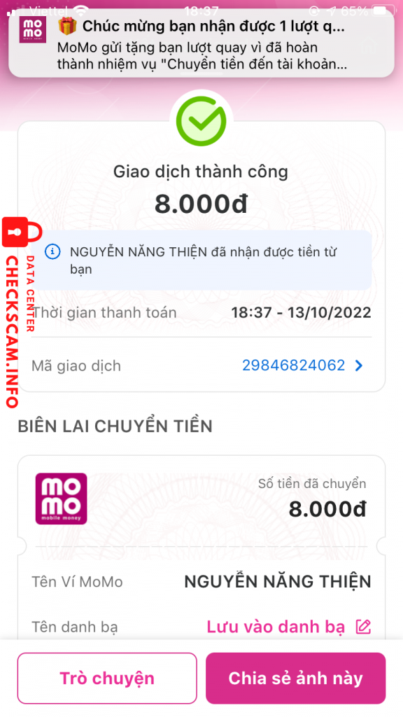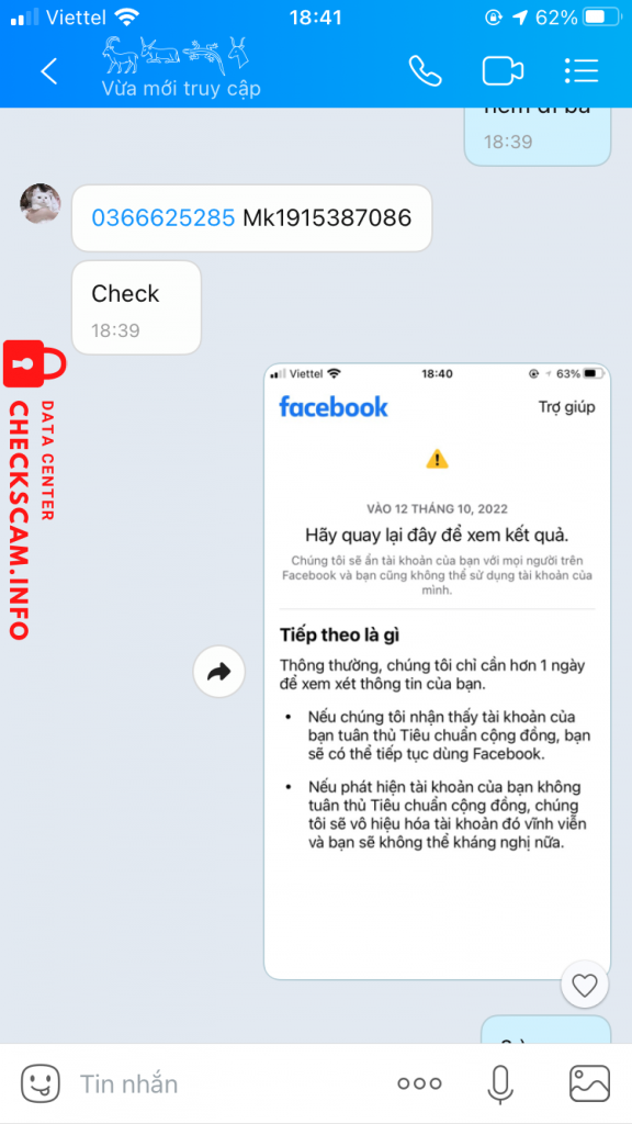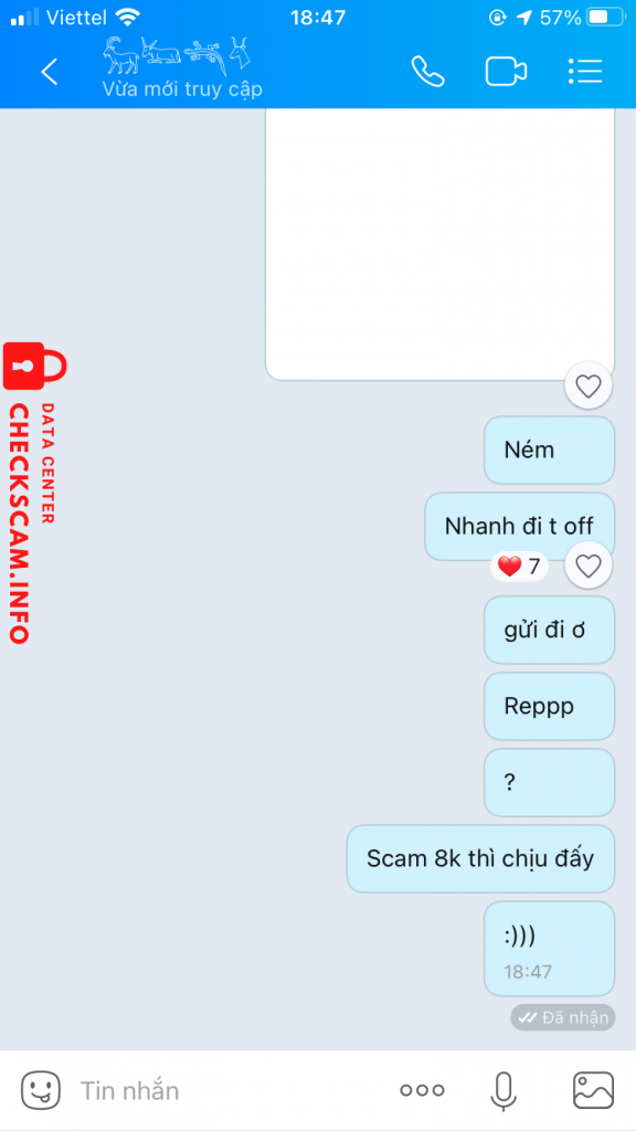 诈骗者警报: Nguyễn Năng Thiện 已报告: November 16, 2024 诈骗者信息 全名: Nguyễn Năng Thiện 电话号码: 0326228305 支付网关: MOMO 支付账户: 0326228305 类别: 市场诈骗 来源: Checkscam 证据文件 报告描述 Lừa đảo bán fb cổ , on kh rep đã bị block 评论 您的评论 添加评论 暂无评论。成为第一个分享您与此诈骗者经历的人。