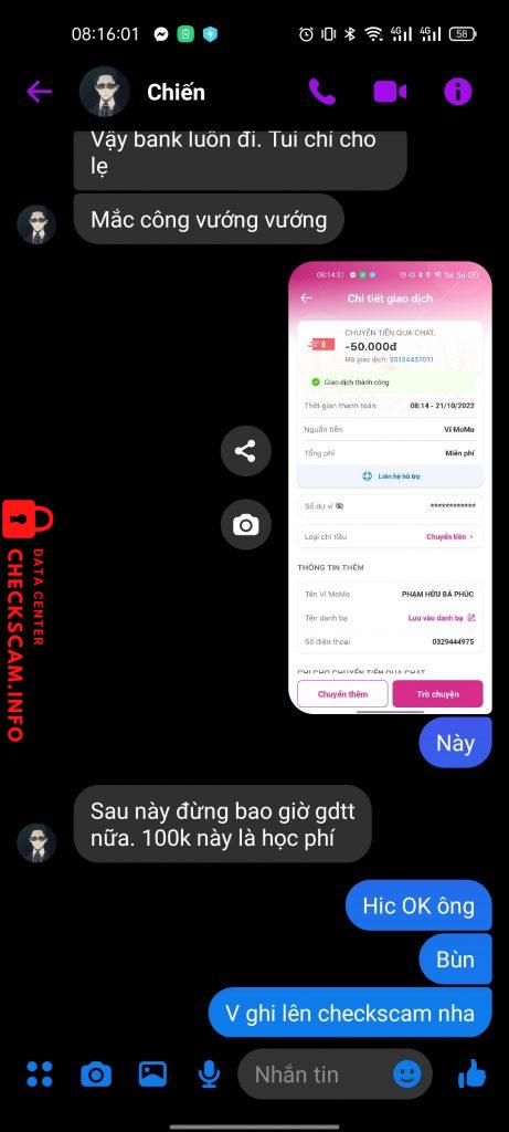 诈骗者警报: Nguyễn Hữu Bá Phúc 已报告: November 16, 2024 诈骗者信息 全名: Nguyễn Hữu Bá Phúc 电话号码: 0329444975 支付网关: Momo 支付账户: 0329444975 类别: 市场诈骗 来源: Checkscam 证据文件 报告描述 Lừa đảo mua acc clash of clan 评论 您的评论 添加评论 暂无评论。成为第一个分享您与此诈骗者经历的人。