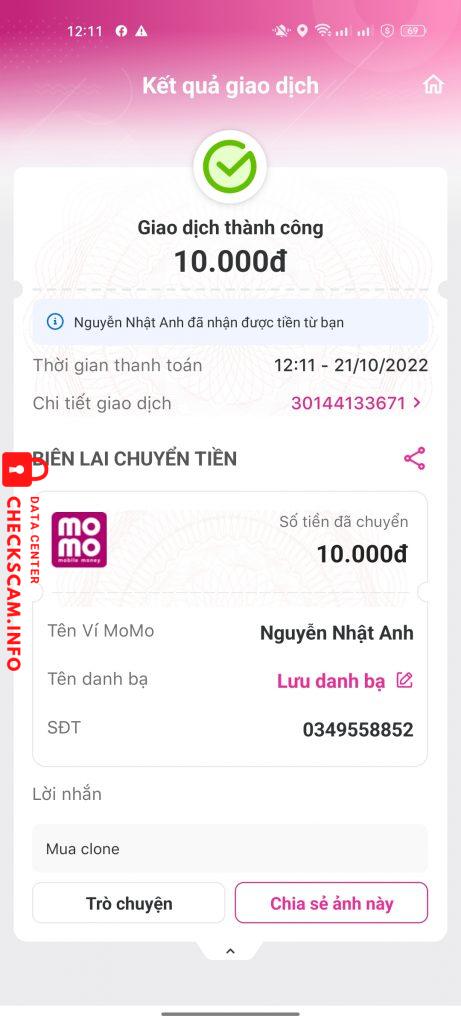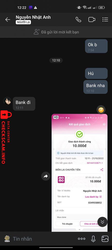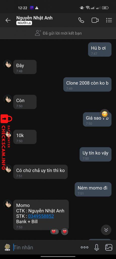 诈骗者警报: Nguyễn Nhật Anh 已报告: November 16, 2024 诈骗者信息 全名: Nguyễn Nhật Anh 电话号码: 0349558852 支付网关: Momo 支付账户: 0349558852 类别: 市场诈骗 来源: Checkscam 证据文件 报告描述 Scam bán via clone fb 评论 您的评论 添加评论 暂无评论。成为第一个分享您与此诈骗者经历的人。