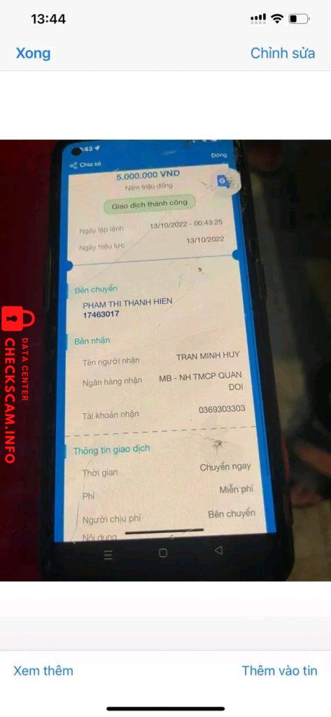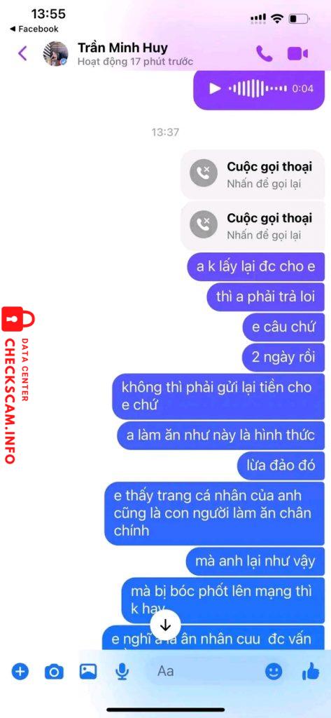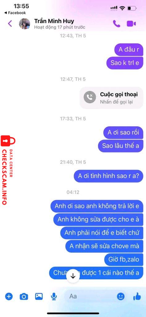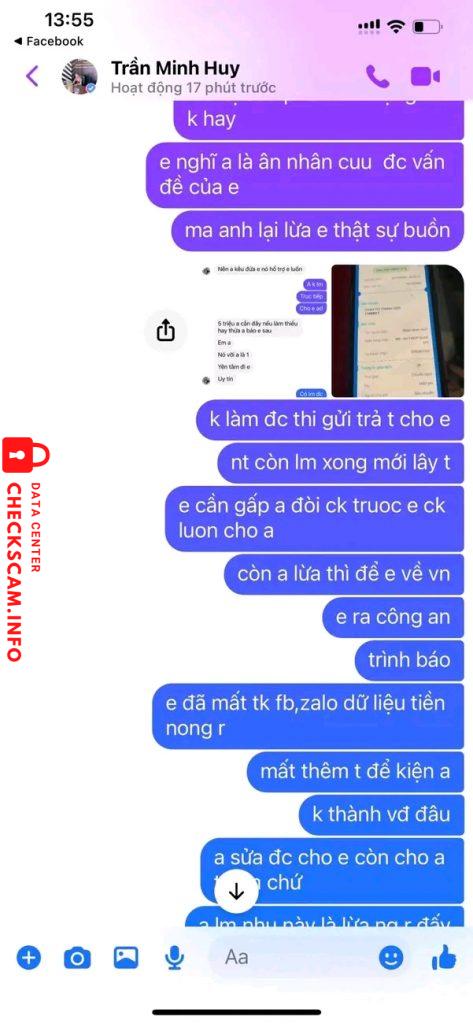 诈骗者警报: TRẦN MINH HUY 已报告: November 16, 2024 诈骗者信息 全名: TRẦN MINH HUY 电话号码: 0369303303 支付网关: MBANK QUAN ĐỘI 支付账户: 0369303303 类别: 市场诈骗 来源: Checkscam 证据文件 报告描述 Thằng này chuyên đi lừa đảo facebook nó lừa đảo bạn em mất 5tr em đăng lên mà admin k duyệt mbank của nó 0369303303 TRẦn Minh Huy zalo nó 0369303303 评论 您的评论 添加评论 暂无评论。成为第一个分享您与此诈骗者经历的人。
