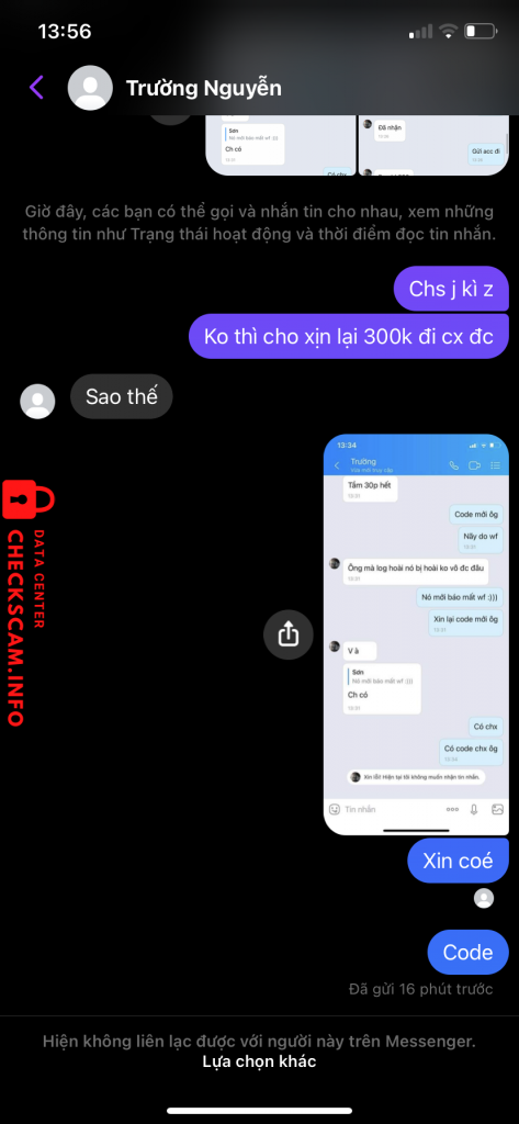 诈骗者警报: Trường Nguyễn 已报告: November 16, 2024 诈骗者信息 全名: Trường Nguyễn 电话号码: 0374803830 支付网关: Tsr và momo 支付账户: 0374803830 类别: 市场诈骗 来源: Checkscam 证据文件 报告描述 Scam nha 评论 您的评论 添加评论 暂无评论。成为第一个分享您与此诈骗者经历的人。