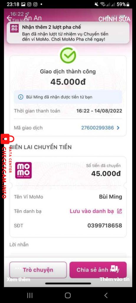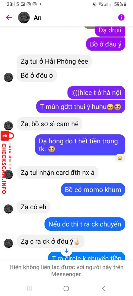 Chắc nick clone thôi=))) nma fb tên an an còn momo tên Bui Ming nhé. Chắc ko phải sdt rác đâu vì ban đầu t gọi vẫn đổ chuông còn lần t2 thì tắt cmn máy=)))) nếu b có lên đây check xem có sdt mình ko thì gia đình t làm công an nhé^^ 40k cx scam thì b là con chó rẻ rách rùi^^