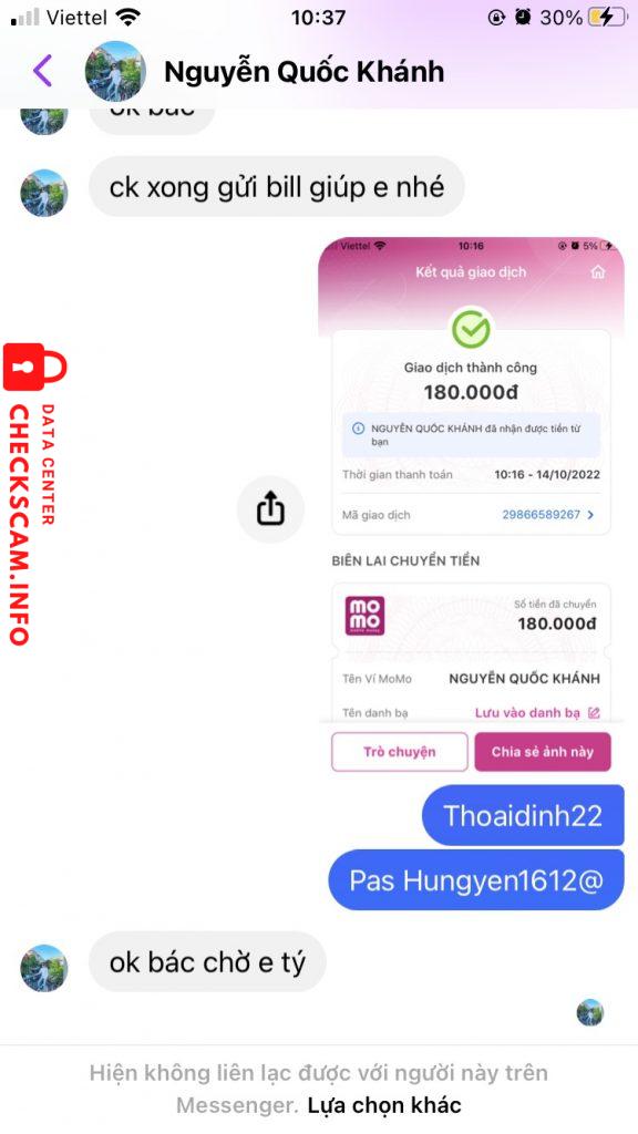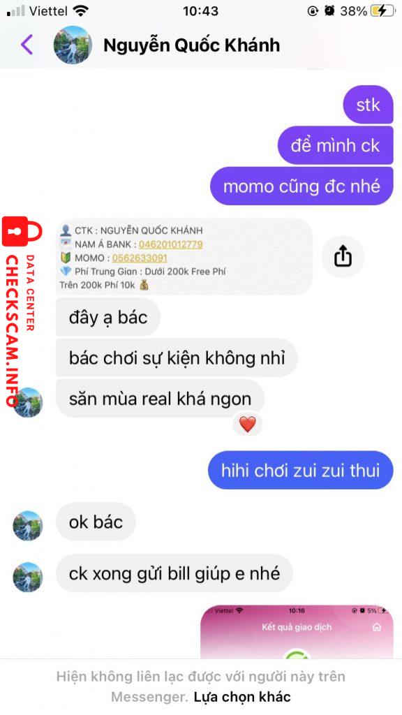 诈骗者警报: NGUYỄN QUỐC KHÁNH 已报告: November 16, 2024 诈骗者信息 全名: NGUYỄN QUỐC KHÁNH 电话号码: 0652633091 支付网关: NAM Á BANK 支付账户: 046201012779 类别: 市场诈骗 来源: Checkscam 证据文件 报告描述 lỪA TIỀN BỎ TRỐN, LỪA TIỀN GIAO DỊCH LÙA TIỀN ck XONG TRÓN GIAO DỊCH 评论 您的评论 添加评论 暂无评论。成为第一个分享您与此诈骗者经历的人。