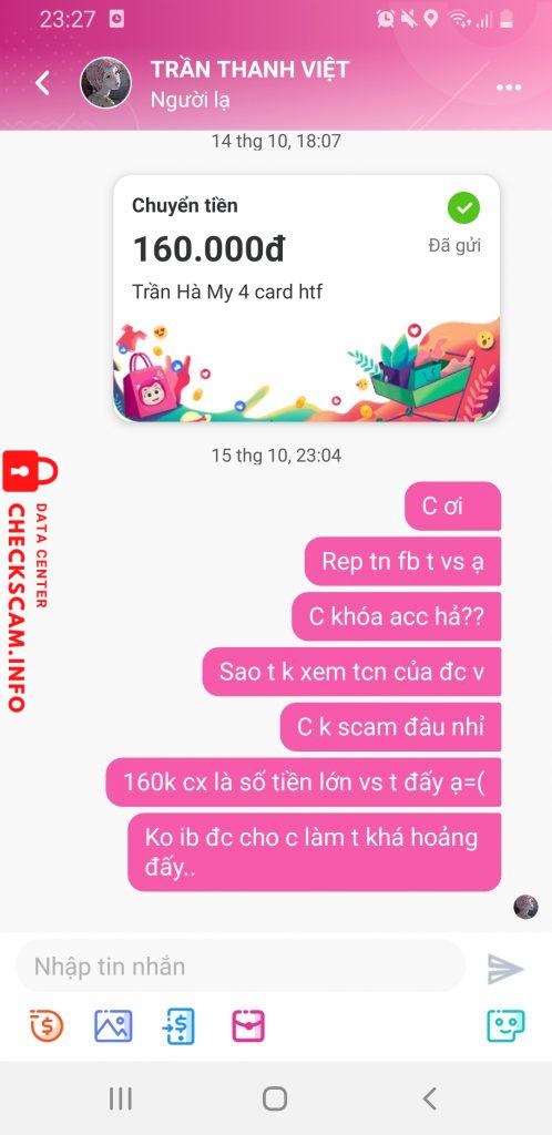 Trên ảnh là đoạn chat lúc t gd với b ấy, t xin bài check lg nhưng cứ kì kèo mãi, bảo gửi tngdtc thì gửi ảnh buyer ck thành công=_= r t vx hỏi thêm và b ấy lại gửi cái j đâu ko (BẠN ẤY ĐÃ THU HỒI TOÀN BỘ TNGD VS BUYER) sau một hồi t vx chấp nhận mua vì c ns “c k tin nx t cx chịu đấy” vì thấy tội lỗi và BÙM 2 ngày sau b ấy khóa fb, t nhắn momo thì cx block t luôn