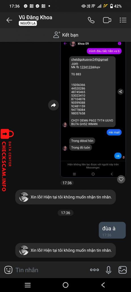 诈骗者警报: Vũ Thị Tuyết Hoa 已报告: November 16, 2024 诈骗者信息 全名: Vũ Thị Tuyết Hoa 电话号码: 0975049198 支付网关: 0975049198 支付账户: 0975049198 类别: 市场诈骗 来源: Checkscam 证据文件 报告描述 cọc acc đầy đủ hết xong hok ném acc và block , và bán acc 224k sub xong back thay allin ttin , 评论 您的评论 添加评论 暂无评论。成为第一个分享您与此诈骗者经历的人。