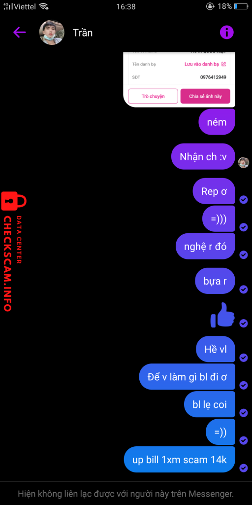诈骗者警报: Trần Quốc Kiệt 已报告: November 16, 2024 诈骗者信息 全名: Trần Quốc Kiệt 电话号码: 0976412949 支付网关: Momo 支付账户: 0976412949 类别: 市场诈骗 来源: Checkscam 证据文件 报告描述 Mua mail bị scam 评论 您的评论 添加评论 暂无评论。成为第一个分享您与此诈骗者经历的人。