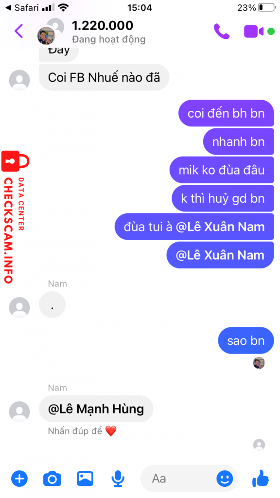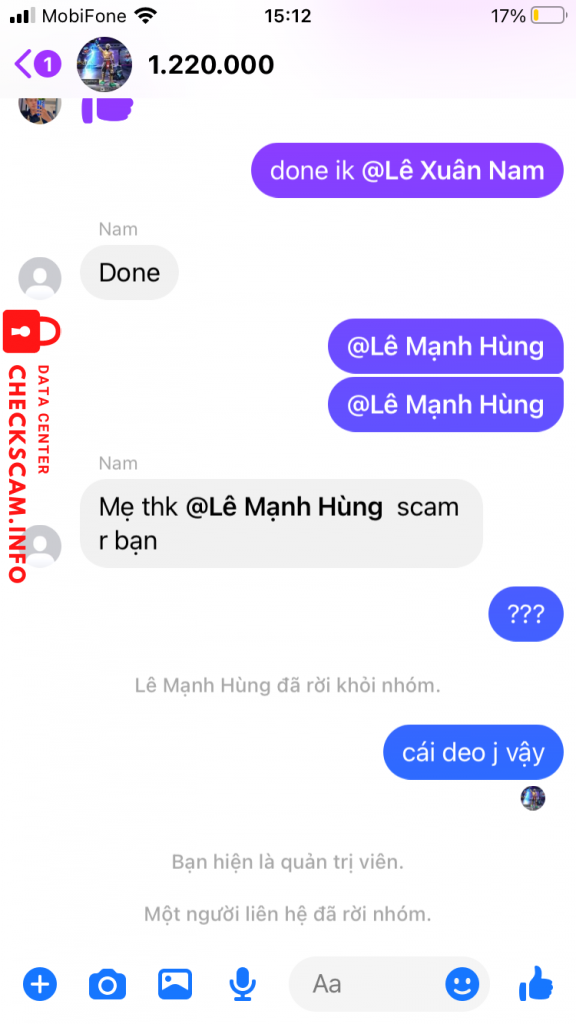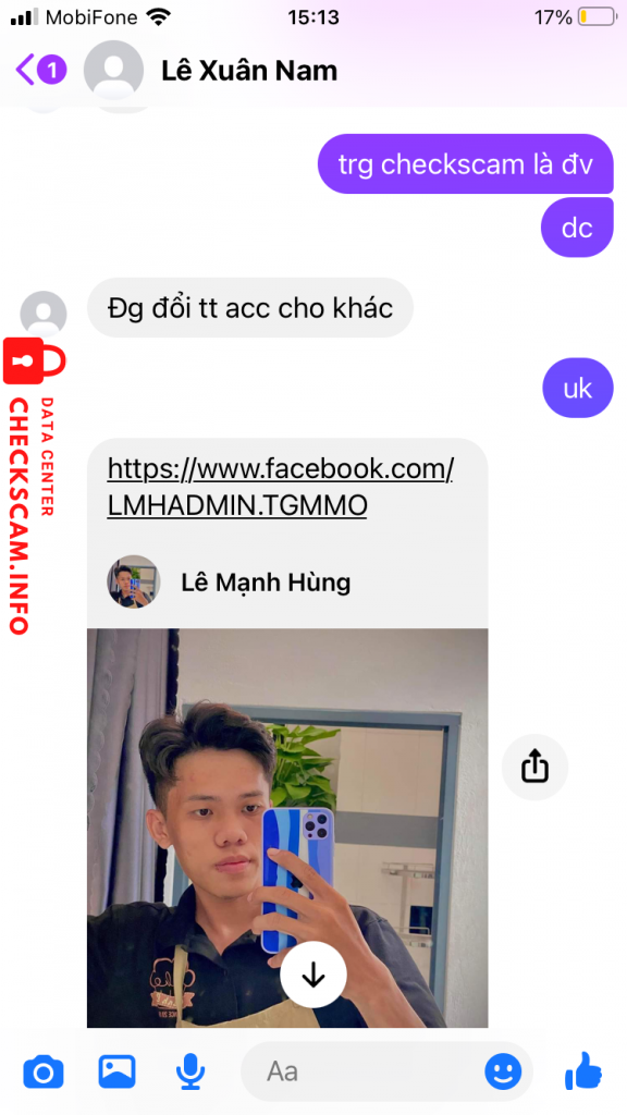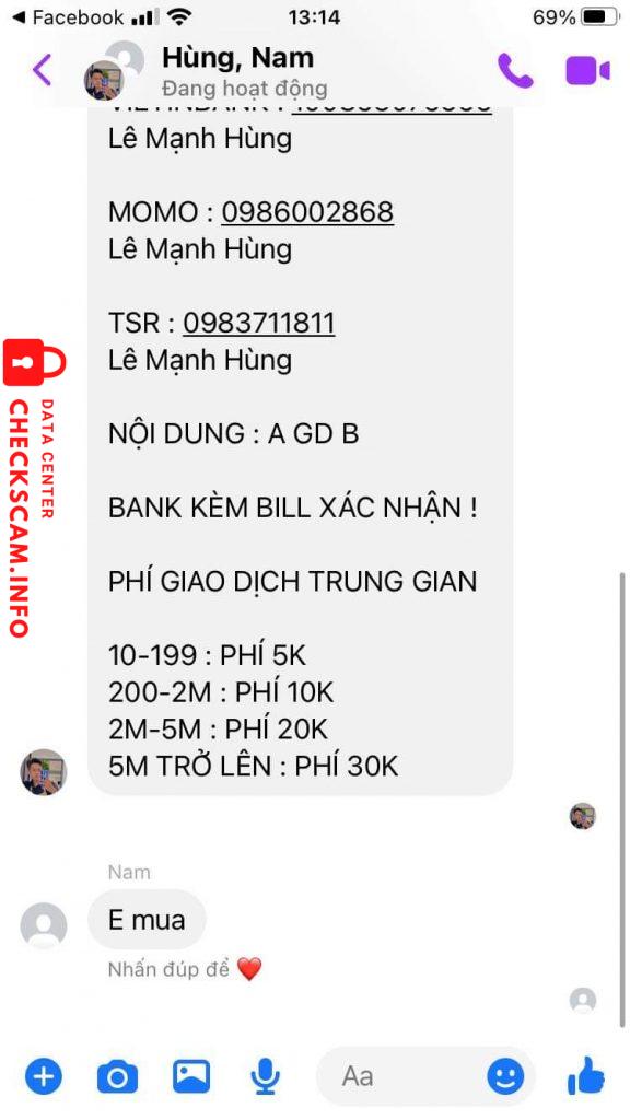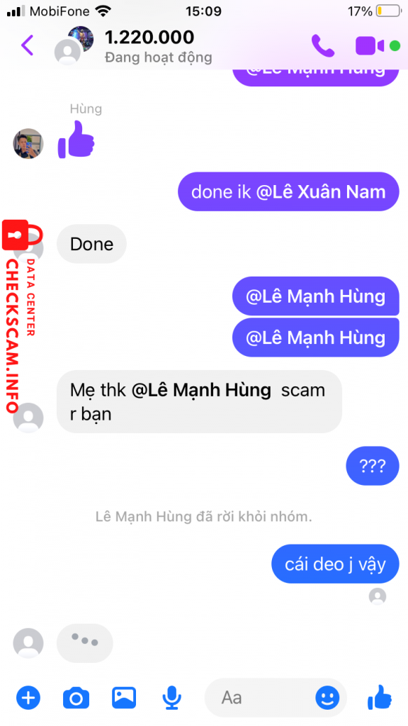 诈骗者警报: Lê Mạnh Hùng 已报告: November 16, 2024 诈骗者信息 全名: Lê Mạnh Hùng 电话号码: 0983711811 支付网关: momo 支付账户: 0986002868 类别: 市场诈骗 来源: Checkscam 证据文件 报告描述 Scam tinh vi 评论 您的评论 添加评论 暂无评论。成为第一个分享您与此诈骗者经历的人。