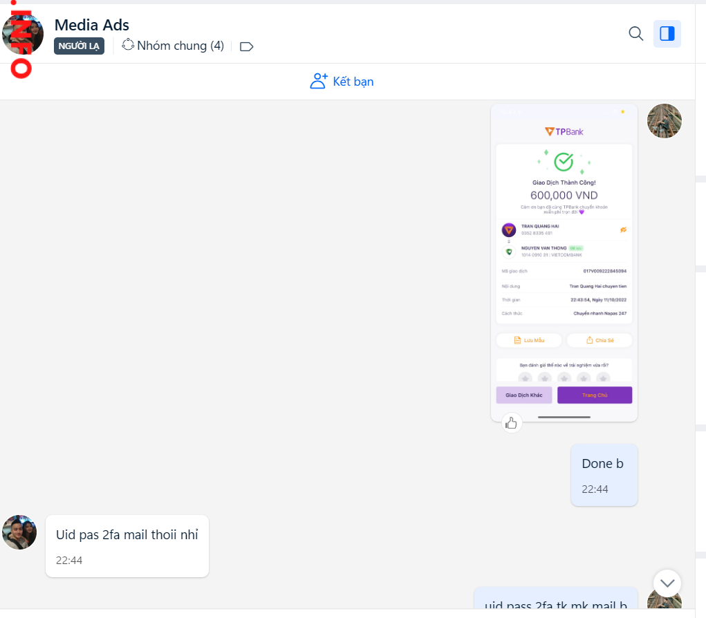 诈骗者警报: Nguyễn Văn Thông 已报告: November 16, 2024 诈骗者信息 全名: Nguyễn Văn Thông 支付网关: Vietcombank 支付账户: 1014091031 类别: 市场诈骗 来源: Checkscam 证据文件 报告描述 评论 您的评论 添加评论 暂无评论。成为第一个分享您与此诈骗者经历的人。