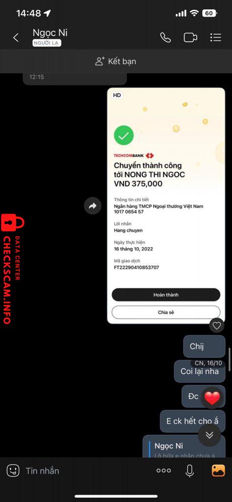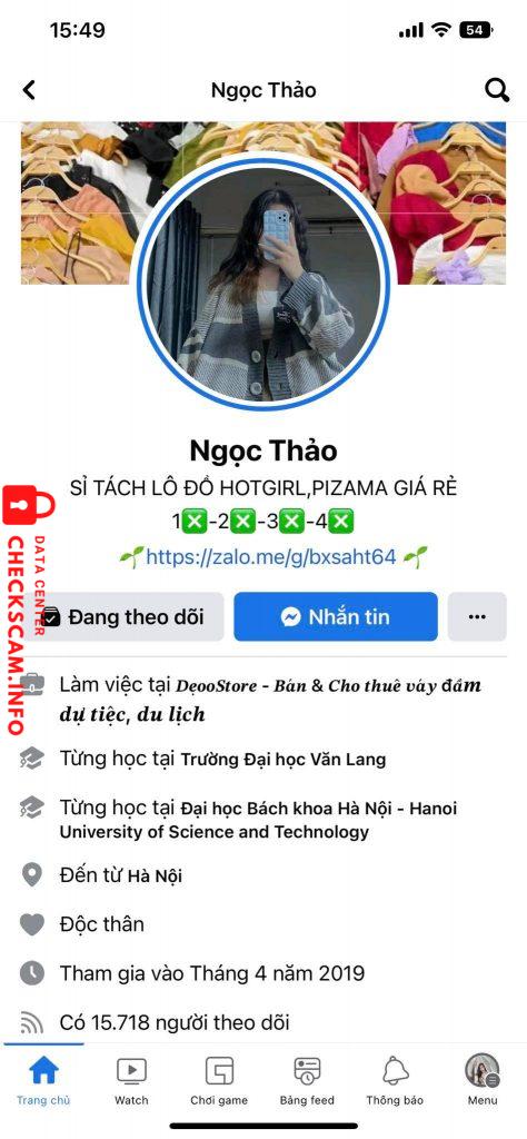 诈骗者警报: Nông Thị Ngọc 已报告: November 16, 2024 诈骗者信息 全名: Nông Thị Ngọc 支付网关: Vietcombank 支付账户: 1017065457 类别: 市场诈骗 来源: Checkscam 证据文件 报告描述 Nó tạo 1 nhóm zalo xong gom các bạn muốn kinh doanh online về mặt hàng bán quần áo vào. Rồi bán những mẫu quần áo giá rẻ. Khi có người mua nó bắt cọc từ 200k đến chuyển khoản hết 5-10tr. Xong rồi kick khỏi group và chặn 评论 您的评论 添加评论 暂无评论。成为第一个分享您与此诈骗者经历的人。