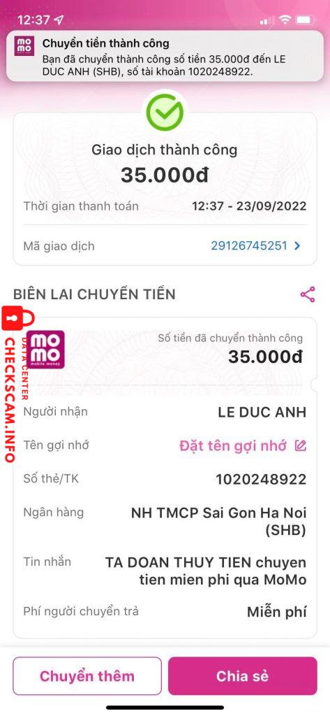 诈骗者警报: Lê Đức Anh 已报告: November 16, 2024 诈骗者信息 全名: Lê Đức Anh 支付网关: SHB 支付账户: 1020248922 类别: 市场诈骗 来源: Checkscam 证据文件 报告描述 Tôi đã mua hàng trên Group Facebook và đã bị lừa đảo 评论 您的评论 添加评论 暂无评论。成为第一个分享您与此诈骗者经历的人。