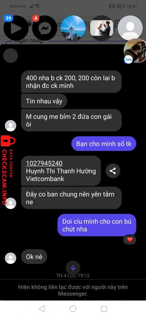 诈骗者警报: Huynh Thi Thanh Hường 已报告: November 16, 2024 诈骗者信息 全名: Huynh Thi Thanh Hường 电话号码: 0784649184 支付网关: VIETCOMBANK 支付账户: 1027945240 类别: 市场诈骗 来源: Checkscam 证据文件 报告描述 LỪA CỌC 200 NGÀN, XONG BLOCK FB 评论 您的评论 添加评论 暂无评论。成为第一个分享您与此诈骗者经历的人。