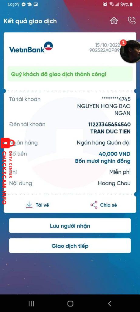 诈骗者警报: Trần Đức Tiến 已报告: November 16, 2024 诈骗者信息 全名: Trần Đức Tiến 电话号码: 0865478294 支付网关: MB Bank 支付账户: 11223345454540 类别: 市场诈骗 来源: Checkscam 证据文件 报告描述 Bán hàng lừa đảo, hay nhờ ck hộ 评论 您的评论 添加评论 暂无评论。成为第一个分享您与此诈骗者经历的人。