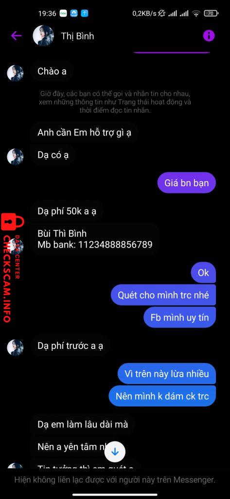 诈骗者警报: Bui thị bình 已报告: November 16, 2024 诈骗者信息 全名: Bui thị bình 支付网关: MB 支付账户: 11234888856789 类别: 市场诈骗 来源: Checkscam 证据文件 报告描述 Lừa đảo quét tk wechat. Nhận tiền xong chặn luôn . 评论 您的评论 添加评论 暂无评论。成为第一个分享您与此诈骗者经历的人。