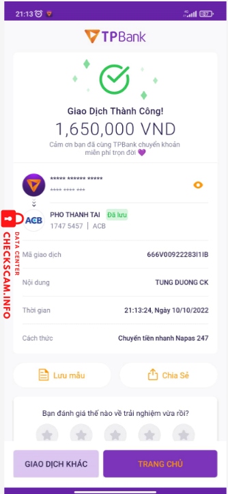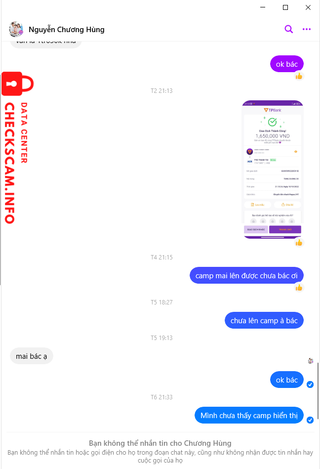 诈骗者警报: PHO THANH TAI 已报告: November 16, 2024 诈骗者信息 全名: PHO THANH TAI 支付网关: ACB 支付账户: 17475457 类别: 市场诈骗 来源: Checkscam 证据文件 报告描述 BẠN NÀY CÓ FB LÀ NGUYỄN CHƯƠNG HÙNG – STK ACB 17475457 – NHẬN CHẠY QUẢNG CÁO GG ADS, SAU KHI NHẬN TIỀN THÌ KHÔNG CHẠY QUẢNG CÁO VÀ CHẶN LUÔN FACEBOOK CỦA NGƯỜI THUÊ. ĐỀ NGHỊ ANH EM CẢNH GIÁC VỚI THẰNG NÀY. 评论 您的评论 添加评论 暂无评论。成为第一个分享您与此诈骗者经历的人。