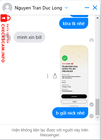 诈骗者警报: Ngô Thị Liễu 已报告: November 16, 2024 诈骗者信息 全名: Ngô Thị Liễu 支付网关: Techcombank 支付账户: 19037503227012 类别: 市场诈骗 来源: Checkscam 证据文件 报告描述 scam dịch vụ facebook 评论 您的评论 添加评论 暂无评论。成为第一个分享您与此诈骗者经历的人。