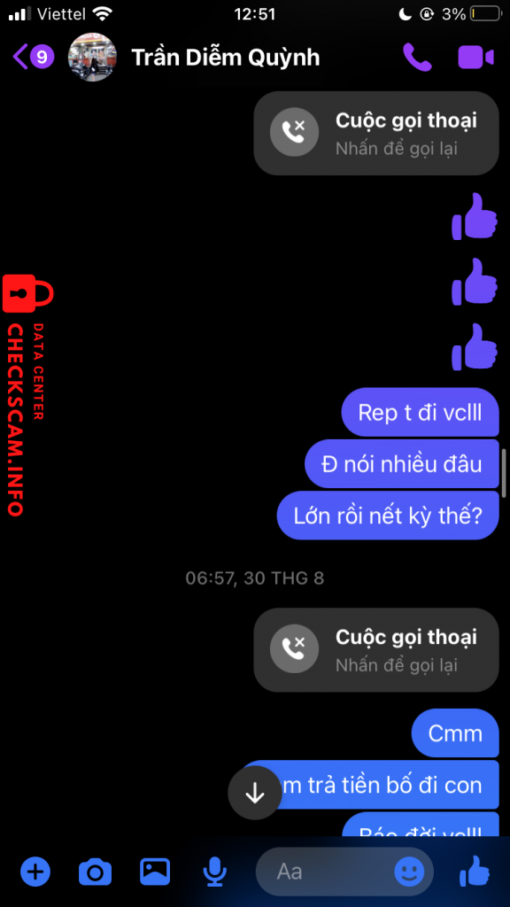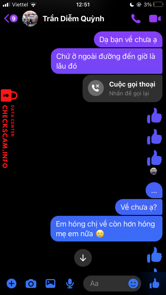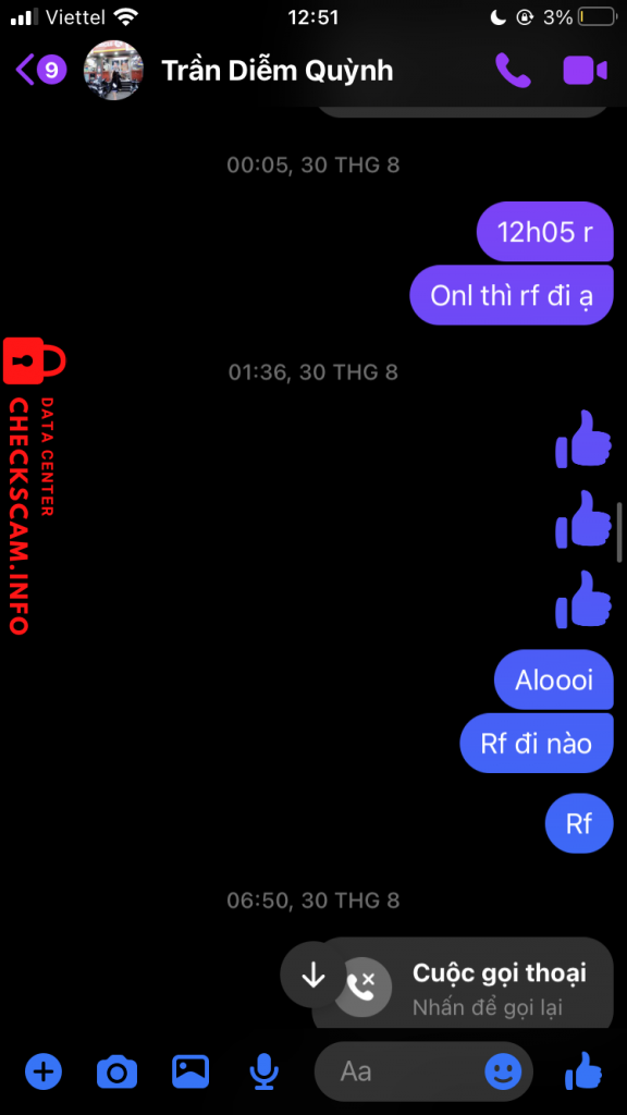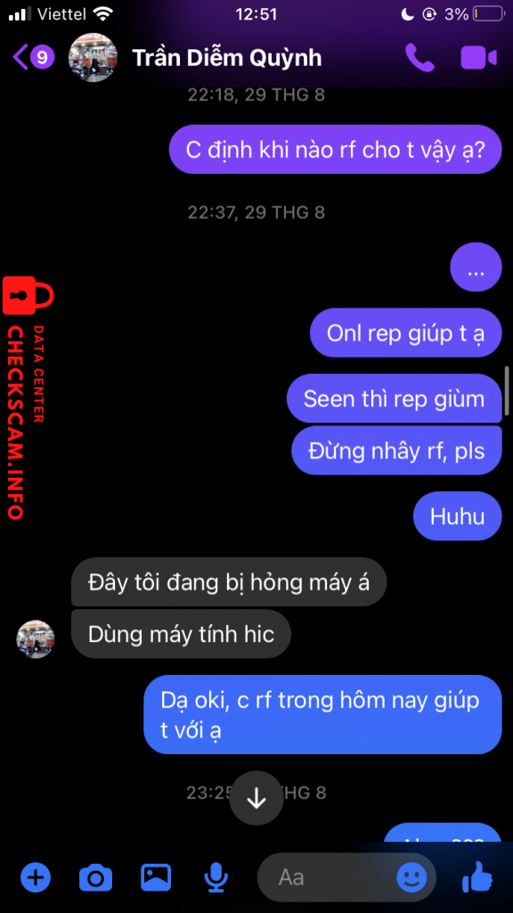 诈骗者警报: Trần Diễm Quỳnh 已报告: November 16, 2024 诈骗者信息 全名: Trần Diễm Quỳnh 电话号码: 0968431082 支付网关: Techcombank 支付账户: 19037852436011 类别: 市场诈骗 来源: Checkscam 证据文件 报告描述 Lừa đảo tiền 评论 您的评论 添加评论 暂无评论。成为第一个分享您与此诈骗者经历的人。