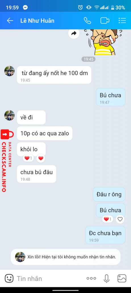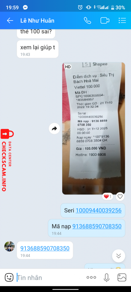 诈骗者警报: Lê Như Huân 已报告: November 16, 2024 诈骗者信息 全名: Lê Như Huân 电话号码: 0912272416 支付网关: TECHCOMBANK 支付账户: 19038892277018 类别: 市场诈骗 来源: Checkscam 证据文件 报告描述 Scam e đã phải nặn lội mưa gió đi mua thẻ cho nó :)) 评论 您的评论 添加评论 暂无评论。成为第一个分享您与此诈骗者经历的人。