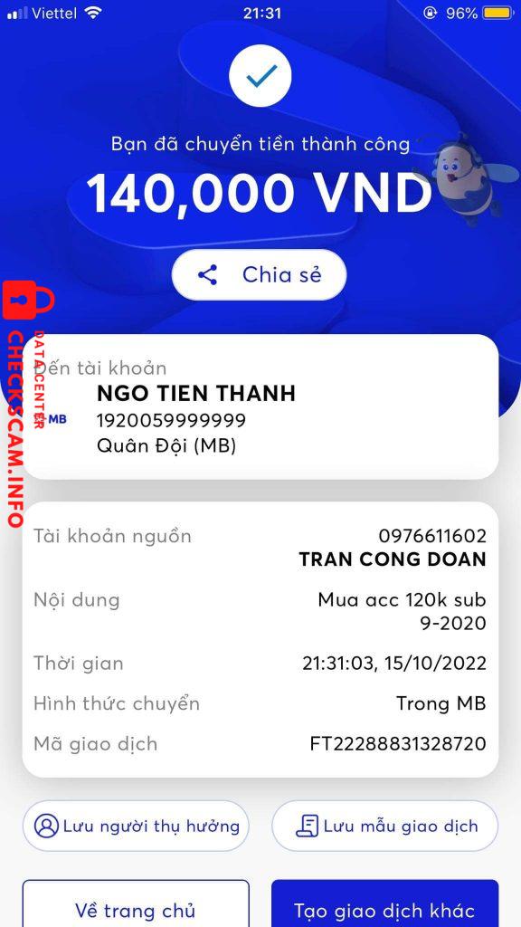 诈骗者警报: Ngô tiến thanh 已报告: November 16, 2024 诈骗者信息 全名: Ngô tiến thanh 支付网关: Mb bank 支付账户: 1920059999999 类别: 市场诈骗 来源: Checkscam 证据文件 报告描述 Scam rác ad lên để cho mọi người né 评论 您的评论 添加评论 暂无评论。成为第一个分享您与此诈骗者经历的人。