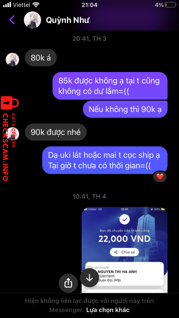 诈骗者警报: Nguyen Thi Ha Anh 已报告: November 16, 2024 诈骗者信息 全名: Nguyen Thi Ha Anh 支付网关: MB bank 支付账户: 2328111805 类别: 市场诈骗 来源: Checkscam 证据文件 报告描述 Lừa đảo 评论 您的评论 添加评论 暂无评论。成为第一个分享您与此诈骗者经历的人。