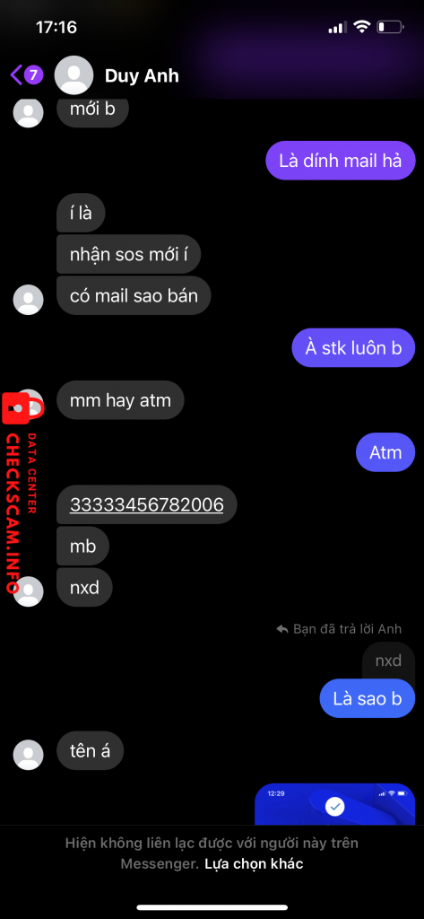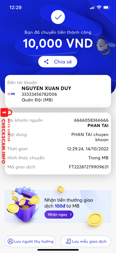 诈骗者警报: NGUYEN XUAN DUY 已报告: November 16, 2024 诈骗者信息 全名: NGUYEN XUAN DUY 电话号码: 33333456782006 支付网关: Mb bank 支付账户: 33333456782006 类别: 市场诈骗 来源: Checkscam 证据文件 报告描述 Scam tiền mua acc liên quân 评论 您的评论 添加评论 暂无评论。成为第一个分享您与此诈骗者经历的人。