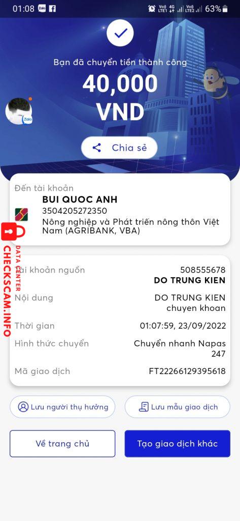 诈骗者警报: Bùi Quốc Anh 已报告: November 16, 2024 诈骗者信息 全名: Bùi Quốc Anh 电话号码: 0387072578 支付网关: Agribank 支付账户: 3504205272350 类别: 市场诈骗 来源: Checkscam 证据文件 报告描述 Lừa đảo vật phẩm khi chuyển tiền xong mất hút..và có ý định chát trên game để lừa tiền tiếp 评论 您的评论 添加评论 暂无评论。成为第一个分享您与此诈骗者经历的人。