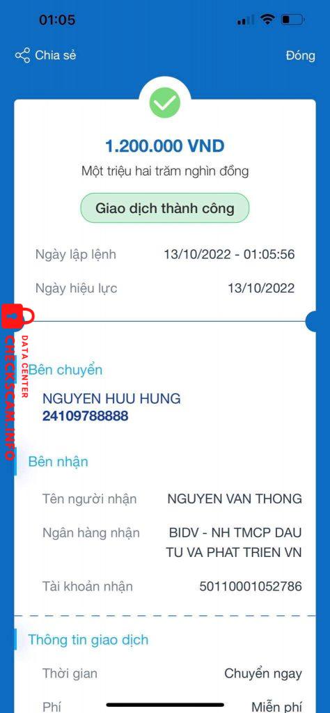 诈骗者警报: Nguyễn Văn Thống 已报告: November 16, 2024 诈骗者信息 全名: Nguyễn Văn Thống 支付网关: BIDV 支付账户: 50110001052786 类别: 市场诈骗 来源: Checkscam 证据文件 报告描述 Lừa đảo bán novery chuyển tiền xong nó chặn luôn 评论 您的评论 添加评论 暂无评论。成为第一个分享您与此诈骗者经历的人。