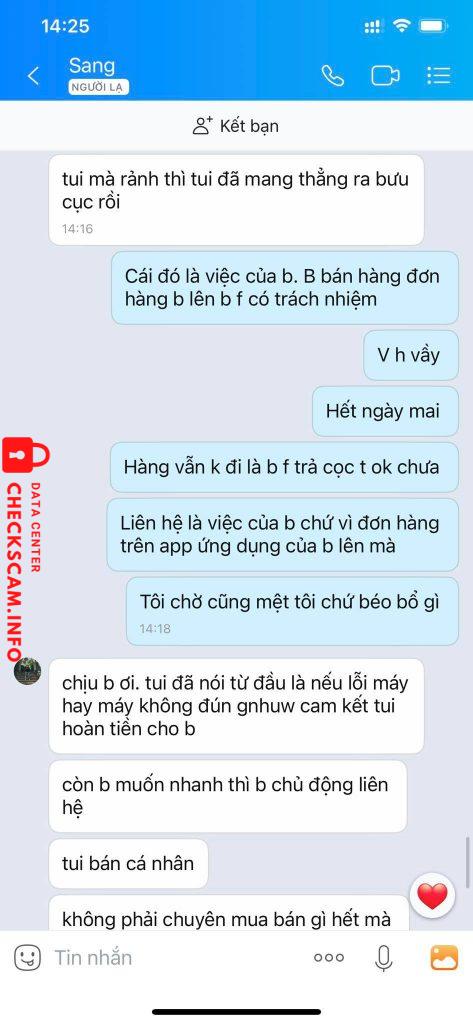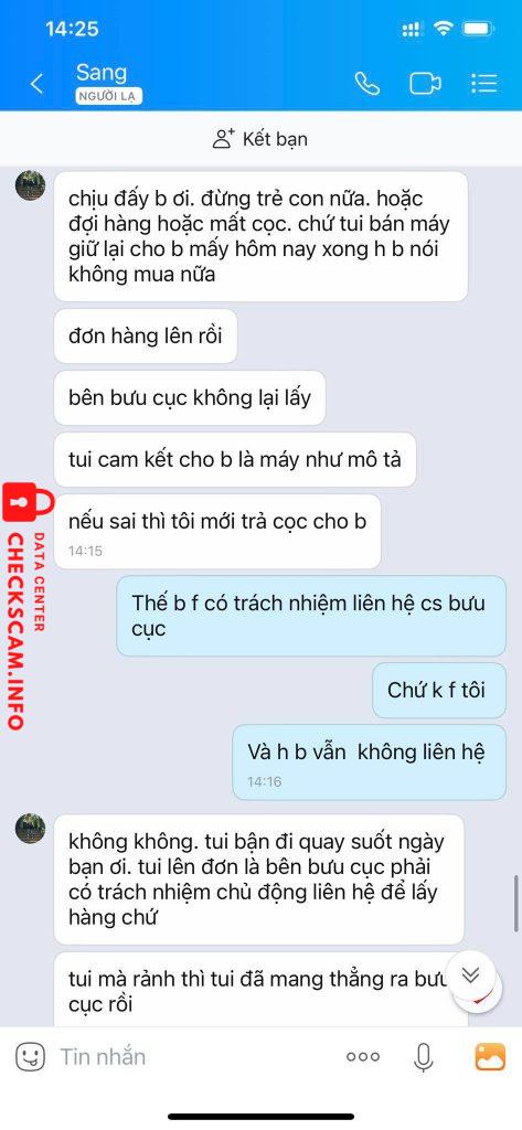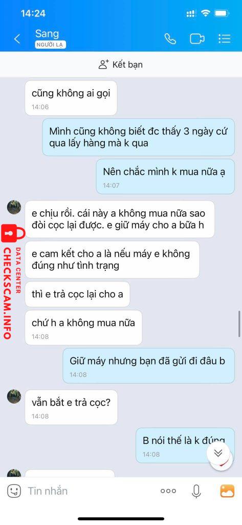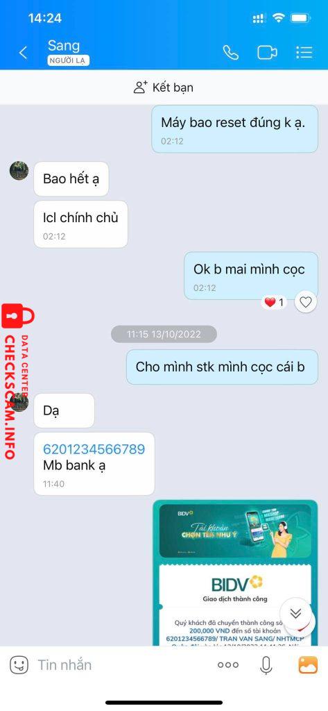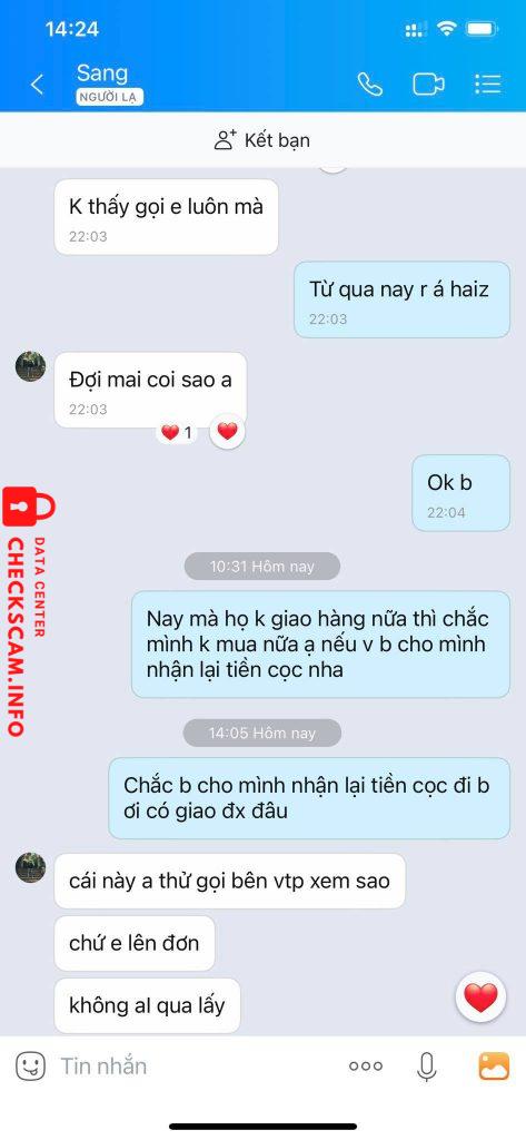e mua điện thoại của thanh niên này thì thanh niên này lừa cọc nói gửi hàng lên đơn như thật xong nhân viên bên vận chuyển đi lấy hàng từ hôm 14 đến nay ngày 18 đều không liên lạc được và đã chặn em. Còn đổ thừa do bên vận chuyển và không cho e lấy lại tiền cọc, em có liên hệ bên bưu cục thì họ nói đi lấy hàng không liên lạc được. 200k nó không f là số tiền lớn nhưng e vẫn cho lên đây ai thấy sdt và stk này thì né nhé. thanks