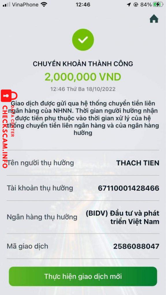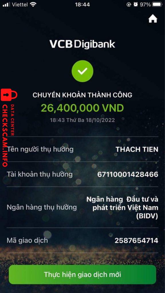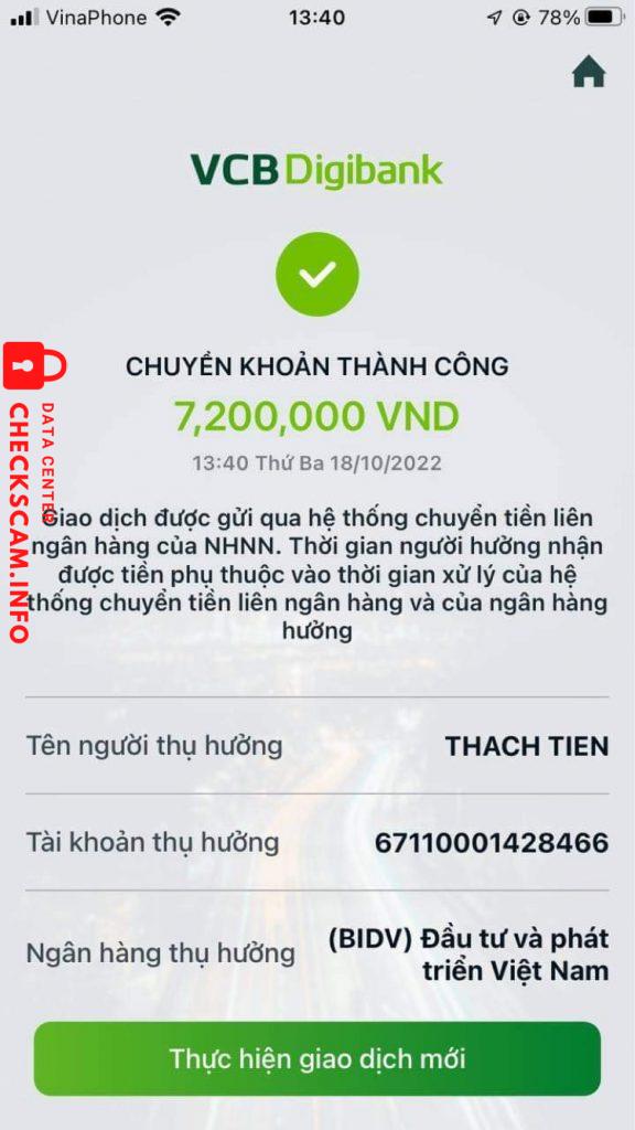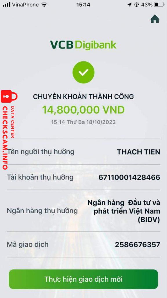 诈骗者警报: THACH TIEN 已报告: November 16, 2024 诈骗者信息 全名: THACH TIEN 支付网关: BIDV 支付账户: 6497110001428466 类别: 市场诈骗 来源: Checkscam 证据文件 报告描述 Lừa Đảo Chiếm đoạt tài sản qua mạng 评论 您的评论 添加评论 暂无评论。成为第一个分享您与此诈骗者经历的人。