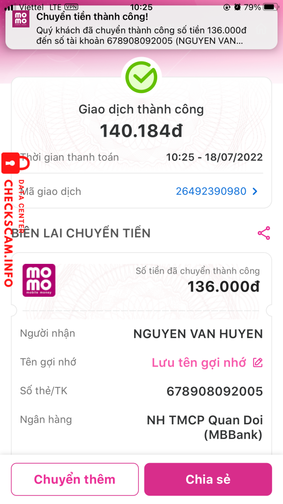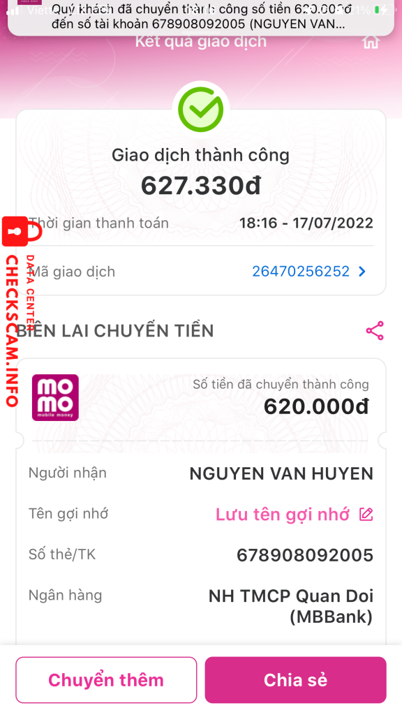 诈骗者警报: 678908092005 已报告: November 16, 2024 诈骗者信息 全名: 678908092005 支付网关: MK BANK - MOMO 支付账户: 678908092005 类别: 市场诈骗 来源: Checkscam 证据文件 报告描述 scam rách 评论 您的评论 添加评论 暂无评论。成为第一个分享您与此诈骗者经历的人。