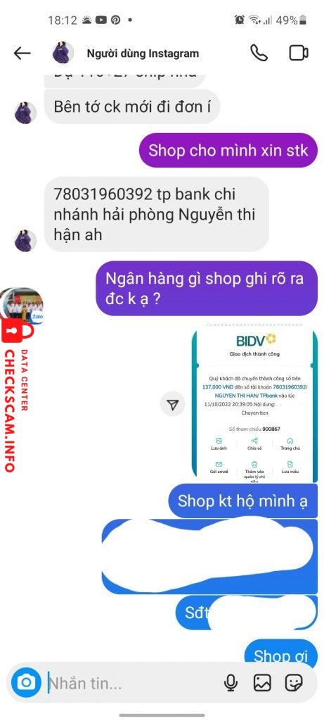 诈骗者警报: 2hand_chuottttt 已报告: November 16, 2024 诈骗者信息 全名: 2hand_chuottttt 支付网关: Tp bank 支付账户: 78031960392 类别: 市场诈骗 来源: Checkscam 证据文件 报告描述 Nó bắt mình chuyển khoản xong mới đi đơn. Mình chuyển khoản xong, hơn tuần r không thấy hàng họ đâu. Nhắn tin thì nó seen rồi im re. Bực thật sự. Nếu k phải số tiền cũng k quá lớn thì mình gọi công an điều tra chết cđm nó luôn rồi 评论 您的评论 添加评论 暂无评论。成为第一个分享您与此诈骗者经历的人。