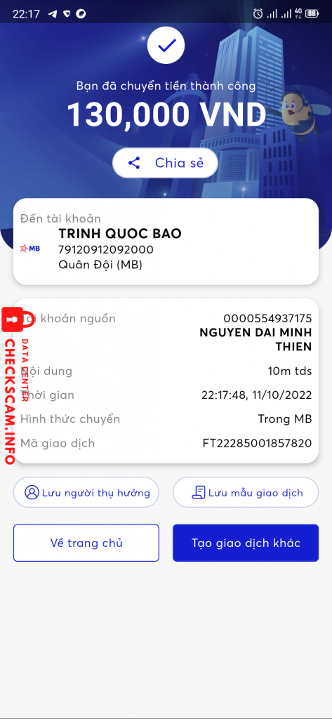 诈骗者警报: Trinh quoc bao 已报告: November 16, 2024 诈骗者信息 全名: Trinh quoc bao 支付网关: Mbbank 支付账户: 79120912092000 类别: 市场诈骗 来源: Checkscam 证据文件 报告描述 Lừa đảo tài khoản 评论 您的评论 添加评论 暂无评论。成为第一个分享您与此诈骗者经历的人。