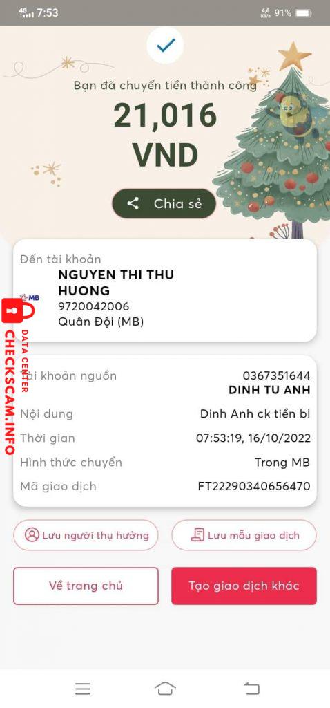 诈骗者警报: NGUYEN THI THU HUONG 已报告: November 16, 2024 诈骗者信息 全名: NGUYEN THI THU HUONG 支付网关: Mb bank 支付账户: 9720042006 类别: 市场诈骗 来源: Checkscam 证据文件 报告描述 Chuyên đi scam số tiền nhỏ 评论 您的评论 添加评论 暂无评论。成为第一个分享您与此诈骗者经历的人。