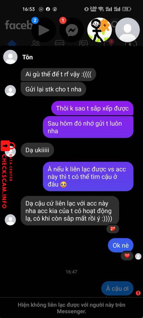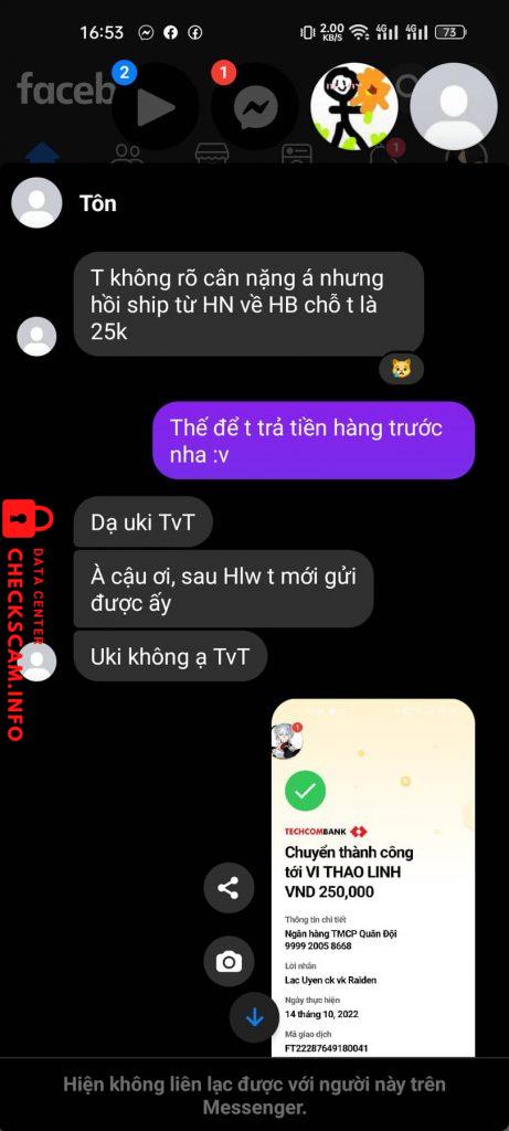 诈骗者警报: Vi Thảo Linh 已报告: November 16, 2024 诈骗者信息 全名: Vi Thảo Linh 支付网关: MB Bank 支付账户: 999920058668 类别: 市场诈骗 来源: Checkscam 证据文件 报告描述 Scam 250k, block nạn nhân sau khi đã trả trước 评论 您的评论 添加评论 暂无评论。成为第一个分享您与此诈骗者经历的人。