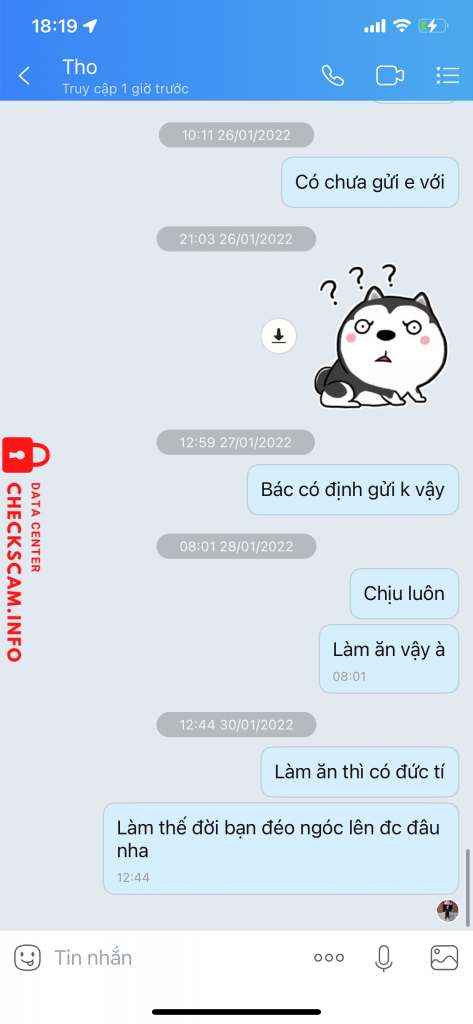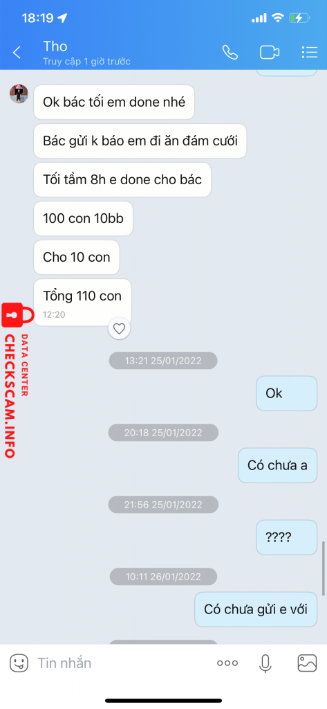 诈骗者警报: Bui Minh Tho 已报告: November 16, 2024 诈骗者信息 全名: Bui Minh Tho 电话号码: 0374261724 支付网关: Mbank 支付账户: 7922838699999 类别: 市场诈骗 来源: Checkscam 证据文件 报告描述 评论 您的评论 添加评论 暂无评论。成为第一个分享您与此诈骗者经历的人。
