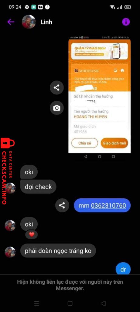 诈骗者警报: Cao Quốc Linh 已报告: November 16, 2024 诈骗者信息 全名: Cao Quốc Linh 电话号码: 0973699826 支付网关: Momo 支付账户: 0973699826 类别: 市场诈骗 来源: Checkscam 证据文件 报告描述 Đối tượng lừa đảo 200k 评论 您的评论 添加评论 暂无评论。成为第一个分享您与此诈骗者经历的人。