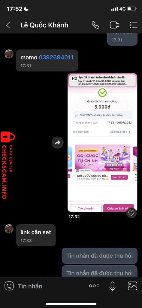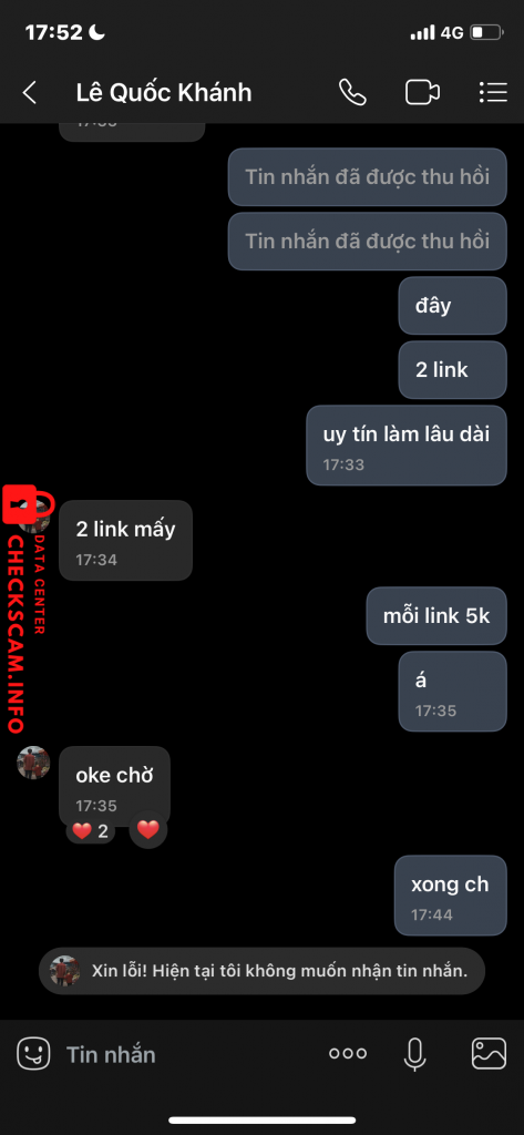 诈骗者警报: Chu Văn Tuấn 已报告: November 16, 2024 诈骗者信息 全名: Chu Văn Tuấn 电话号码: 0392694011 支付网关: Momo 支付账户: 0392694011 类别: 市场诈骗 来源: Checkscam 证据文件 报告描述 Lừa đảo bán sub, bank tiền block mong ad hỗ trợ 评论 您的评论 添加评论 暂无评论。成为第一个分享您与此诈骗者经历的人。