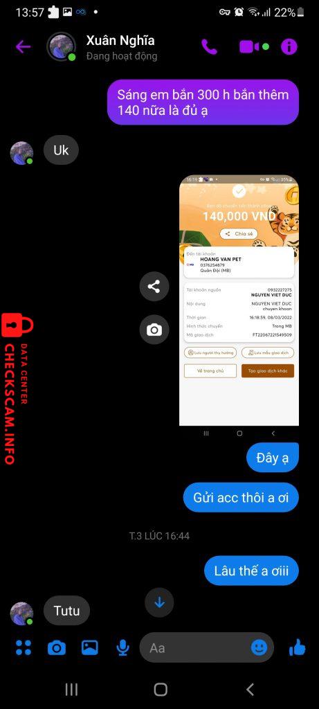 诈骗者警报: Chu Xuân Nghĩa 已报告: November 16, 2024 诈骗者信息 全名: Chu Xuân Nghĩa 电话号码: 037 支付网关: MB bank 支付账户: 0376254879 类别: 市场诈骗 来源: Checkscam 证据文件 报告描述 Lừa đảo 评论 您的评论 添加评论 暂无评论。成为第一个分享您与此诈骗者经历的人。