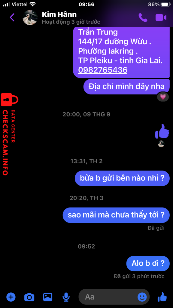 诈骗者警报: đặng thị thuỳ trang 已报告: November 16, 2024 诈骗者信息 全名: đặng thị thuỳ trang 支付网关: vietcombank 支付账户: 0161001627371 类别: 市场诈骗 来源: Checkscam 证据文件 报告描述 lừa đảo mua bán , nhận tiền xong trốn mất , ko gửi hàng cho người mua . 评论 您的评论 添加评论 暂无评论。成为第一个分享您与此诈骗者经历的人。