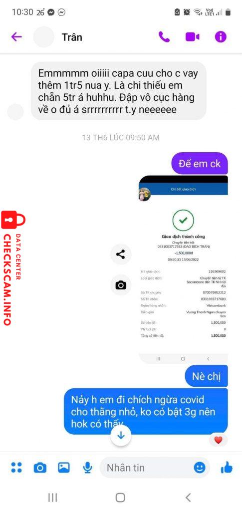 Bạn Trân này có nick fb (Trân Đào) nhắn tin mượn tiền nhiều bạn bè trong group với lý do cấp cứu ba bệnh, con bệnh, người nhà tai nạn..v.v.