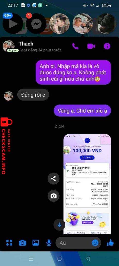 诈骗者警报: Deo Ngọc Thạch 已报告: November 16, 2024 诈骗者信息 全名: Deo Ngọc Thạch 电话号码: 0767753811 支付网关: Vietcombank 支付账户: 9814200938 类别: 市场诈骗 来源: Checkscam 证据文件 报告描述 Tiền 250k coi như cúng mày đấy Deo Ngọc Thạch fb chính nó là Lê Cường Quốc 评论 您的评论 添加评论 暂无评论。成为第一个分享您与此诈骗者经历的人。