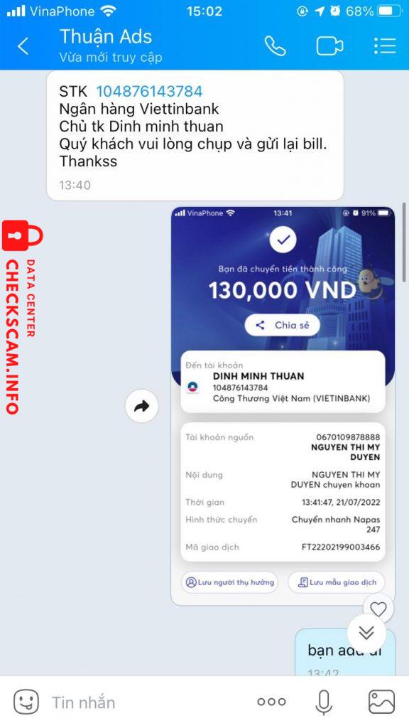 诈骗者警报: Dinh minh thuan 已报告: November 16, 2024 诈骗者信息 全名: Dinh minh thuan 支付网关: Ngân hàng Viettinbank 支付账户: 104876143784 类别: 市场诈骗 来源: Checkscam 证据文件 报告描述 Thấy nó đăng bán nguyên liệu trên nhiều nhóm zalo. Mua 2 con tk xong bảo chờ chút share qua cho, 15′ sau vào thấy thì không share chặn luôn. 评论 您的评论 添加评论 暂无评论。成为第一个分享您与此诈骗者经历的人。