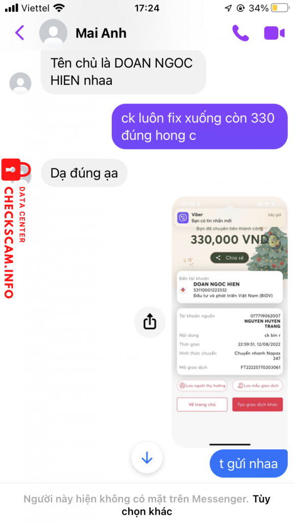 诈骗者警报: Đoàn Ngọc Hiền 已报告: November 16, 2024 诈骗者信息 全名: Đoàn Ngọc Hiền 支付网关: BIDV 支付账户: 53110001223332 类别: 市场诈骗 来源: Checkscam 证据文件 报告描述 评论 您的评论 添加评论 暂无评论。成为第一个分享您与此诈骗者经历的人。