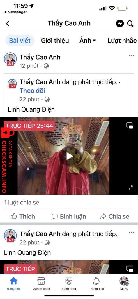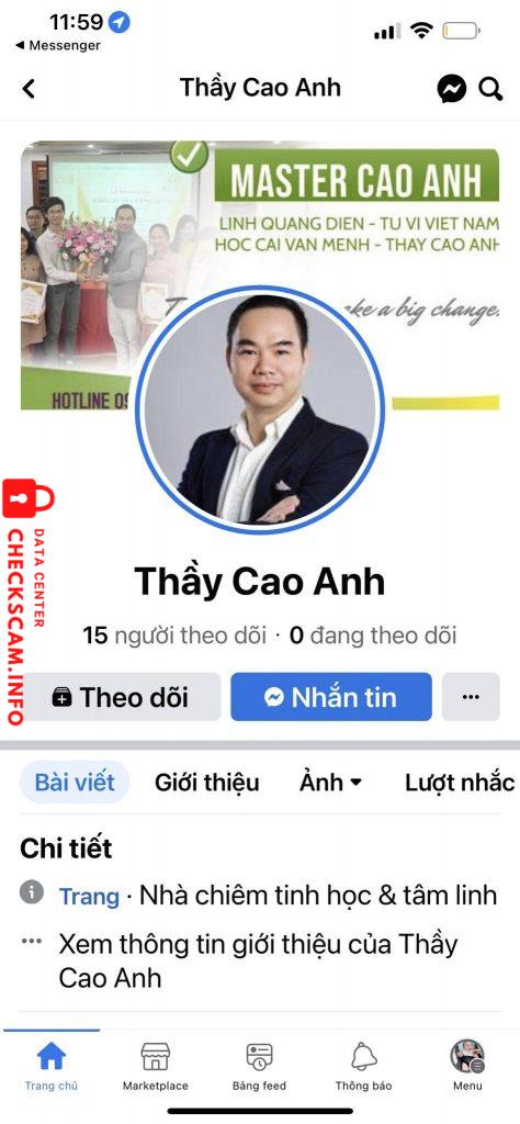 Xin các bạn khẩn cấp nhấn nút báo cáo giúp Thầy Cao Anh trang giả mạo này. Người này lợi dụng uy tín của Cao Anh đi lừa tiền của rất nhiều người rồi. Mọi người để ý các bài đăng trên page chính thức luôn có rất nhiều lượt thích , bình luận và chia sẻ.