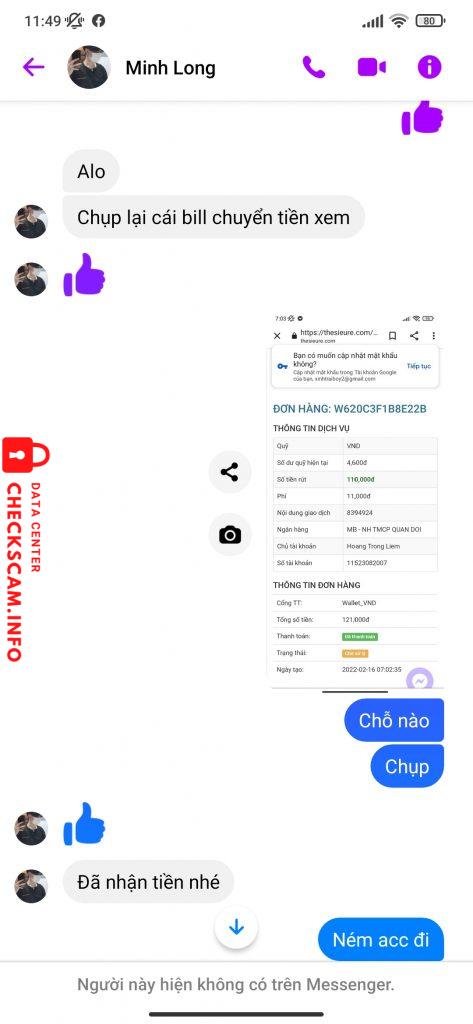 诈骗者警报: Hoàng Minh Long 已报告: November 16, 2024 诈骗者信息 全名: Hoàng Minh Long 电话号码: 0374415446 支付网关: MB Bank 支付账户: 1224607092000 类别: 市场诈骗 来源: Checkscam 证据文件 报告描述 Cố Hút máu Lừa đảo chiếm đoạt tài sản 评论 您的评论 添加评论 暂无评论。成为第一个分享您与此诈骗者经历的人。