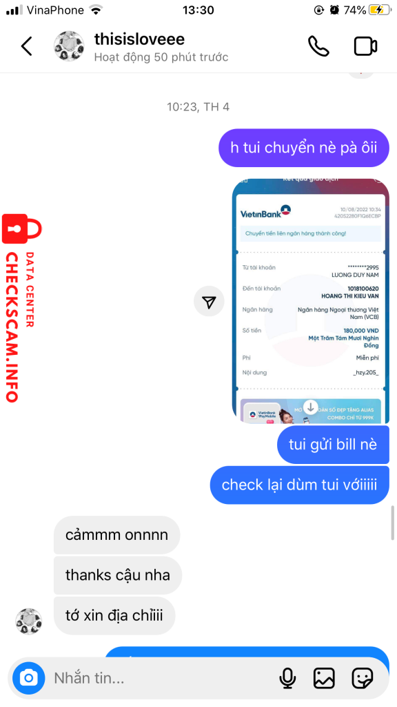诈骗者警报: HOANG THI KIEU VAN 已报告: November 16, 2024 诈骗者信息 全名: HOANG THI KIEU VAN 支付网关: vietcombank 支付账户: 1018100620 类别: 市场诈骗 来源: Checkscam 证据文件 报告描述 bán đồ si và scam của nhiều bạn đây mới là một số mà mn tìm ra được thôi chứ vẫn còn nhiều bạn nữa =))) và không chỉ có 1 số tài khoản này mà còn nhiều số tài khoản và địa chỉ khác nhau nữa. 评论 您的评论 添加评论 暂无评论。成为第一个分享您与此诈骗者经历的人。