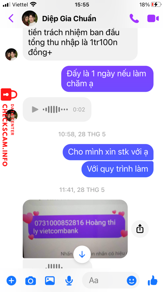 诈骗者警报: Hoàng Thị Ly 已报告: November 16, 2024 诈骗者信息 全名: Hoàng Thị Ly 支付网关: VIETCOMBANK 支付账户: 0731000852816 类别: 市场诈骗 来源: Checkscam 证据文件 报告描述 Đăng bài tuyển thợ gia công bắt cọc trước xong mất tích 评论 您的评论 添加评论 暂无评论。成为第一个分享您与此诈骗者经历的人。