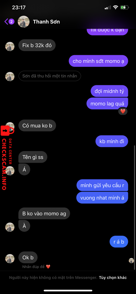 诈骗者警报: Huỳnh Thanh Sơn 已报告: November 16, 2024 诈骗者信息 全名: Huỳnh Thanh Sơn 电话号码: 0921286091 支付网关: Momo 支付账户: 0921286091 类别: 市场诈骗 来源: Checkscam 证据文件 报告描述 Lừa đảo 评论 您的评论 添加评论 暂无评论。成为第一个分享您与此诈骗者经历的人。